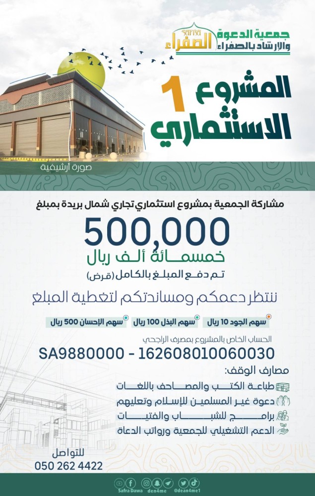 هدفنا هو مشاركة الجمعية بمشروع إستثماري تجاري شمال بريدة:
